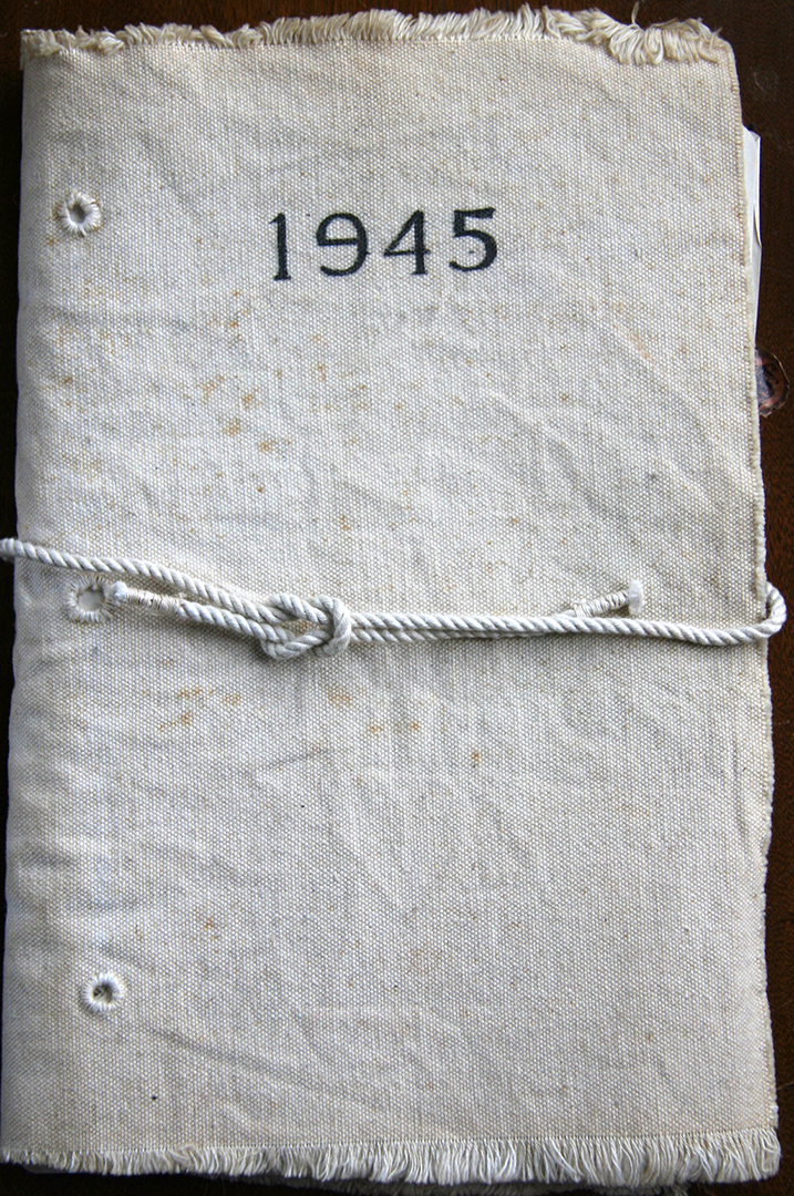 1945 Gallery Day Book - loose pages in a cloth binder recording sales, gallery volunteer sitters, opening of events, etc. from the Kenneth Taylor Galleries.
