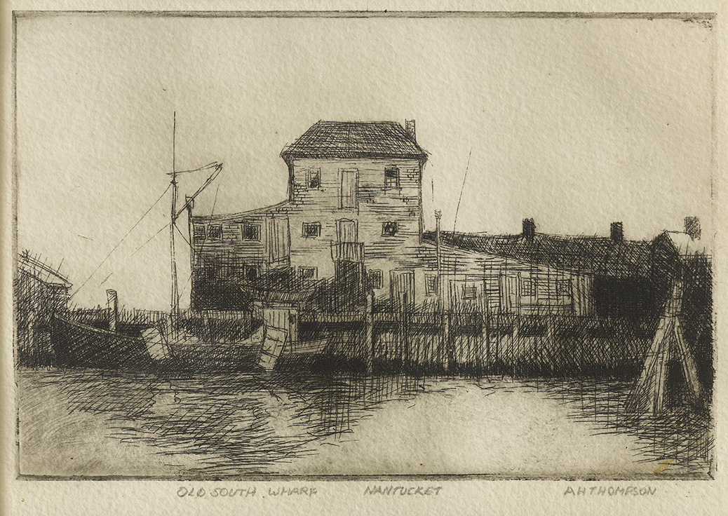 Thompson worked on Nantucket starting in the 1950’s, and he received grants to carry on his art career from both the Massachusetts and New York state arts councils. He was the proprietor of Nantucket Printmaking from 1975–78. Three of his etchings are preserved in the AAN Permanent Collection. Tony was a Co-founding Educator for the Nantucket Island School of Design and the Arts in 1979, instructing summers there until 1991. He exhibited on Nantucket at the Main Street Gallery, AAN, and more recently at Gráficas.