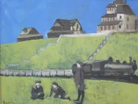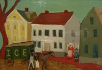 Elizabeth Ensign wrote an art-news column for the “Inquirer and Mirror”, and painted Americana canvases of such subjects as the American Revolution and Nantucket history. She studied sculpture in New York and on island worked with Niki Carpenko. At the beginning of the ‘80’s, Ensign shared a gallery with Jo Sibley called the Ensign-Sibley Gallery. She kept a studio on Eel Point Road. She flourished as an artist from 1970-1990.