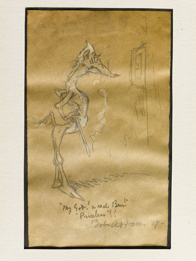 This artsy cartoon from 1939 is likely a commentary on the somewhat mass produced 5x7 line of small watercolors done by Doris Riker Beer and Richard Beer, though Doris did larger works on her own. The mass produced usually were signed D&RB, while Doris alone signed DRB.