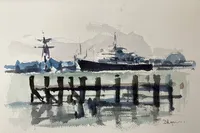 He joined the AAN as a printmaker but now works most often in watercolors and oils. He teaches several painting workshops for the AAN. Lazarus has exhibited artwork at the (X) Gallery, the Old Spouter Gallery and the South Wharf Gallery and Four Winds Craft Guild.