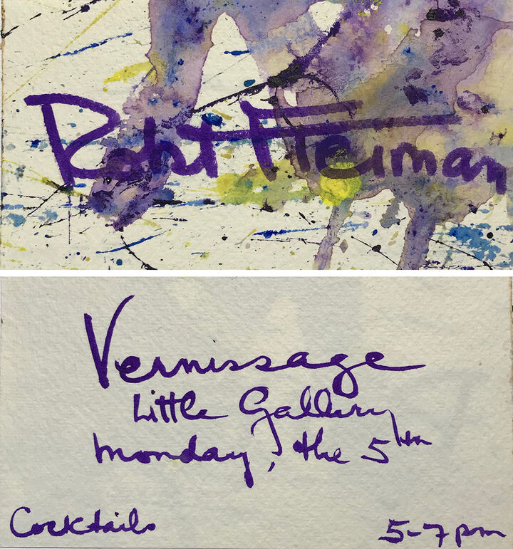 “Vernissage - Robert Freiman The Little Gallery” - handmade invitation, vernissage is a term used for a preview of an art exhibition before the formal opening.