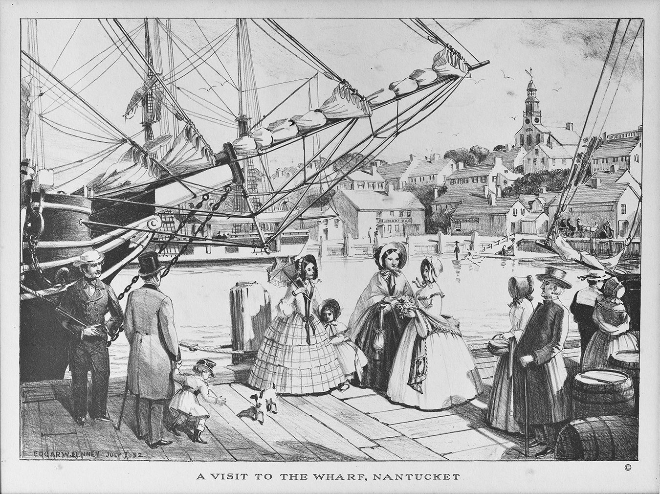 Born of the Colonial Revival movement, Jenney’s grand interiors provided the pattern for “historic decoration” for many generations to come. He also created an immensely popular series of nostalgic lithographic prints of Nantucket in the heyday of the whaling period.