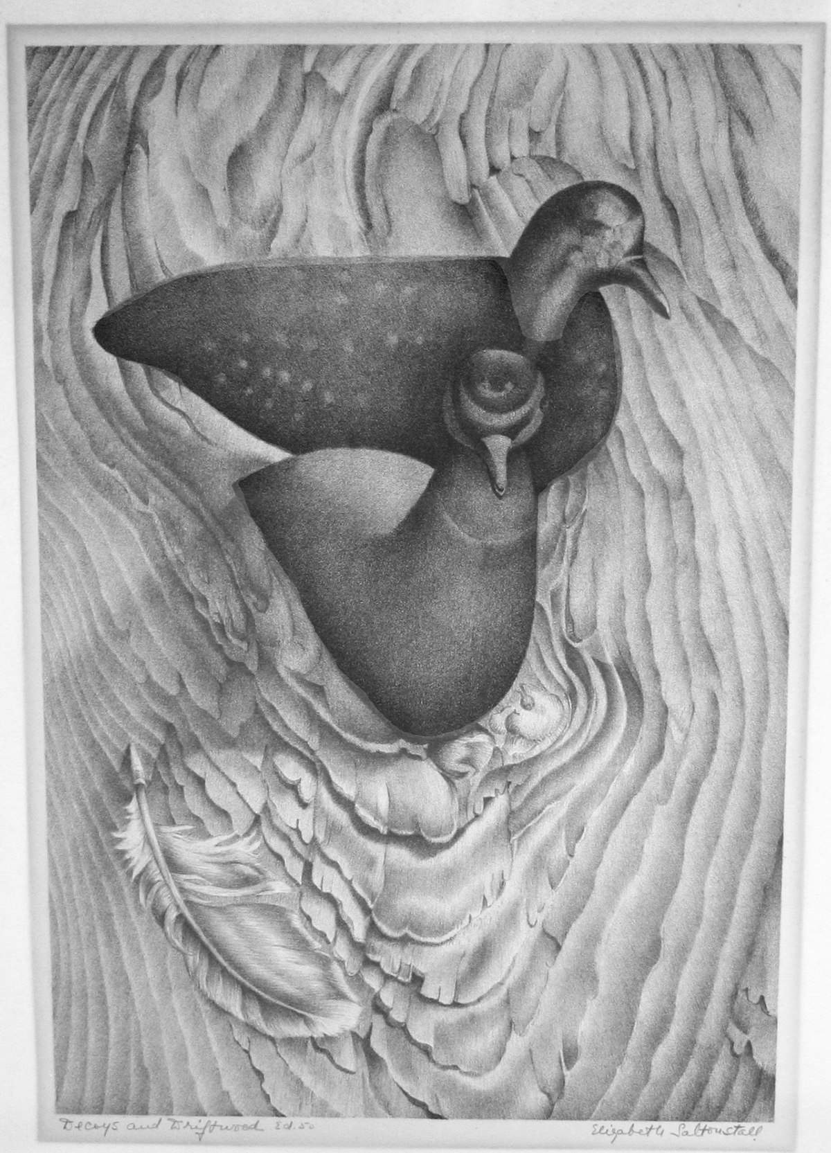 Now recognized as a master of stone lithography, an exacting medium that suited her exquisite drawings of the natural world, her lithography stones were printed by master printmaker George C. Miller. She exhibited at the Audubon Society of Students, Brooklyn Museum, Carnegie Institute International, National Academy of Design, and National Association of Women Artists. On Nantucket she exhibited at the Easy Street Gallery, the Candle House, the James Hunt Barker Galleries, the Main Street Gallery, and the Kenneth Taylor Galleries.