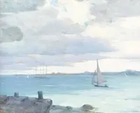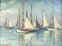 A graduate of Mount Holyoke College, South Hadley, Massachuetts, Hoffmeier taught art classes at the college for several years. From 1917 to 1951 she was a teacher at West Chester High School in Pennslyvania, where she headed the mathematics department. In addition to enrolling in the plein air classes of Frank Swift Chase on Nantucket, Hoffmeier studied off-island some summers with Henry B. Snell in Boothbay Harbor, Maine, and Hugh Breckenridge in Gloucester, Massachusetts. She also exhibited in her home state of Maryland and in Pennsylvania. Her fine Nantucket landscapes, wharf scenes, and views of historic buildings make up the body of her island work. She lived with her sister, Helen Hoffmeier, on Washington Street and off-season in Hagerstown, Maryland on South Prospect Street.