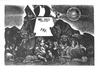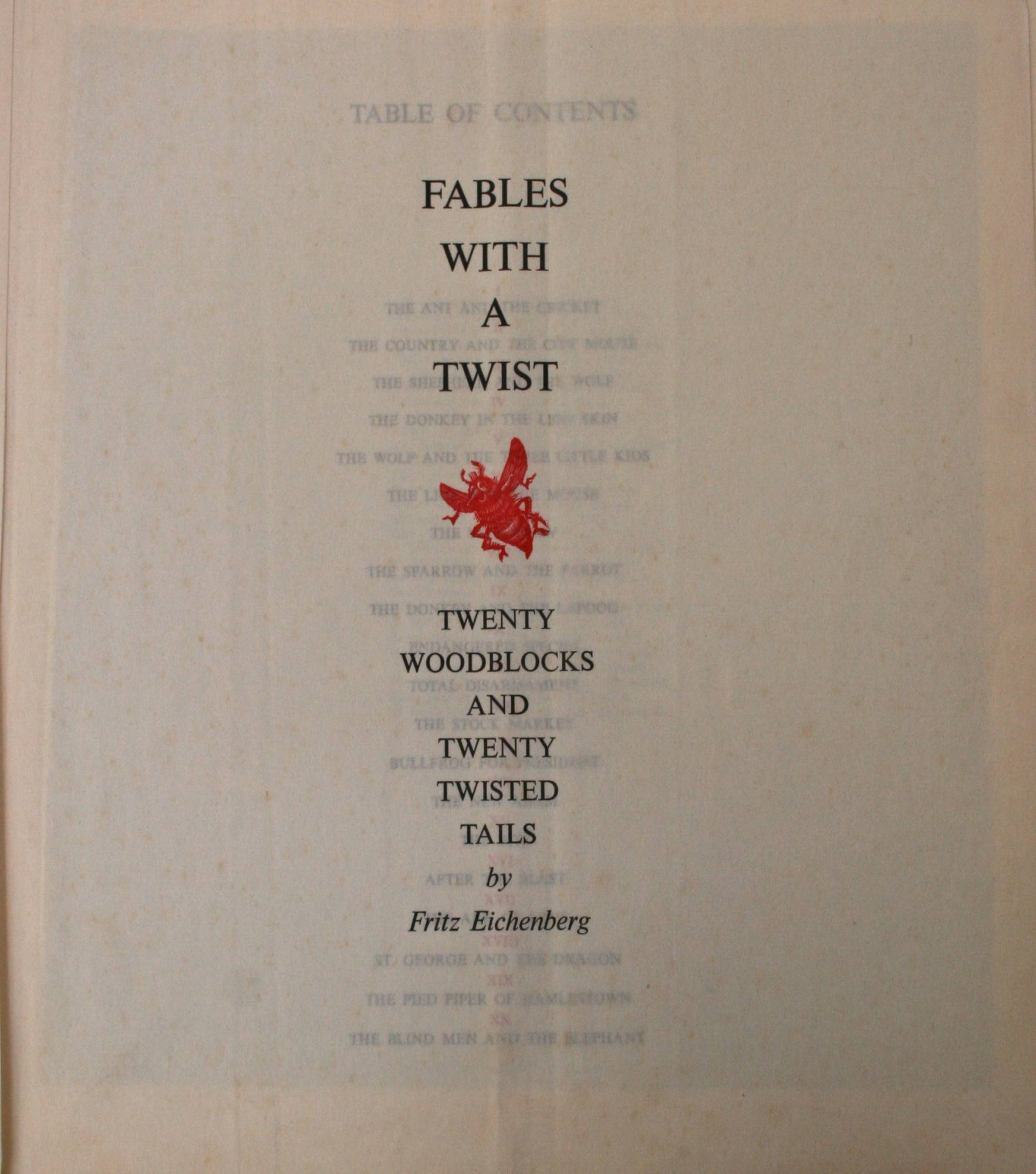 He had exhibitions at the Kenneth Taylor Galleries in July 1980, which included all of the “Fables with a Twist” portfolio, and at the Main Street Gallery in August 1985.