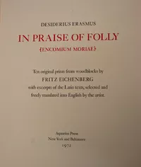 Reggie Levine donated two portfolios of Eichenberg’s prints from the Main Street Gallery Collection, Fables with a Twist and Desiderius Erasmus, In Praise of Folly, in 2013.