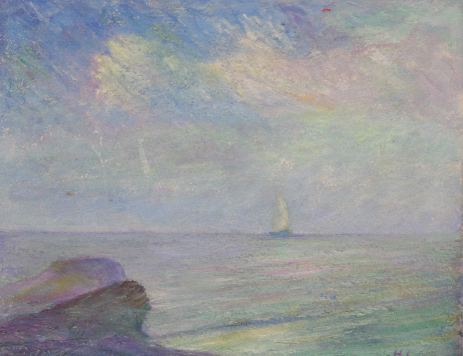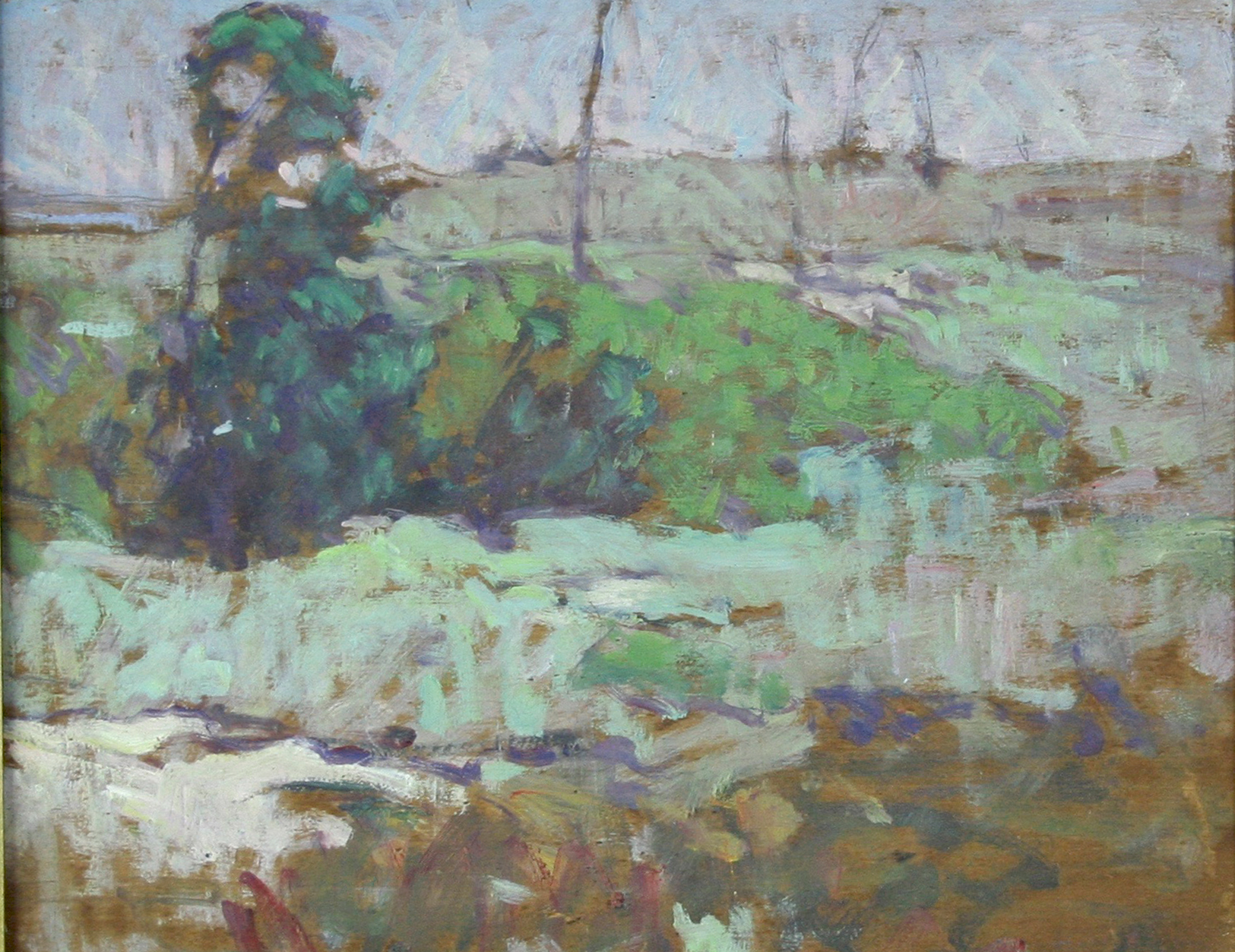 Harriet Lord exhibited at the Red Anchor Studio on Washington Street for over three decades, down the street from the Candle House Studio at the head of Commercial Wharf and around the corner from the cluster of cottages used by the waterfront artists. She advertised her studio as “Open to Visitors/ Sunday Afternoons in July-August.” Lord also showed regularly at the Easy Street Gallery, and took classes from Frank Swift Chase. She later included work in the Sidewalk Art Show and belonged to the Artists Association of Nantucket. An accomplished painter open to experiment with mediums and styles, she focused on landscapes, small portraits, and still lifes. A reviewer from the New York World Telegram wrote in 1931: “Harriet Lord…deals in a colorful manner with autumn on the moors, placing a special emphasis on the deep reds of the season.”