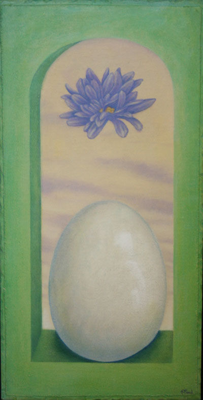 I work in acrylics and love their versatility. I’m drawn to art that makes me feel something. My work is mostly Still life with a symbolic edge and can sometimes border on the surreal. The meaning is there to take or leave or translate as you like.