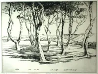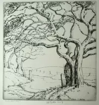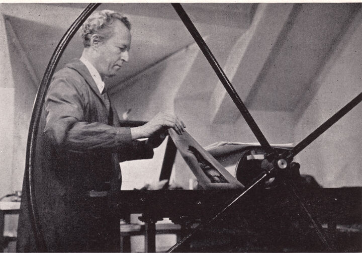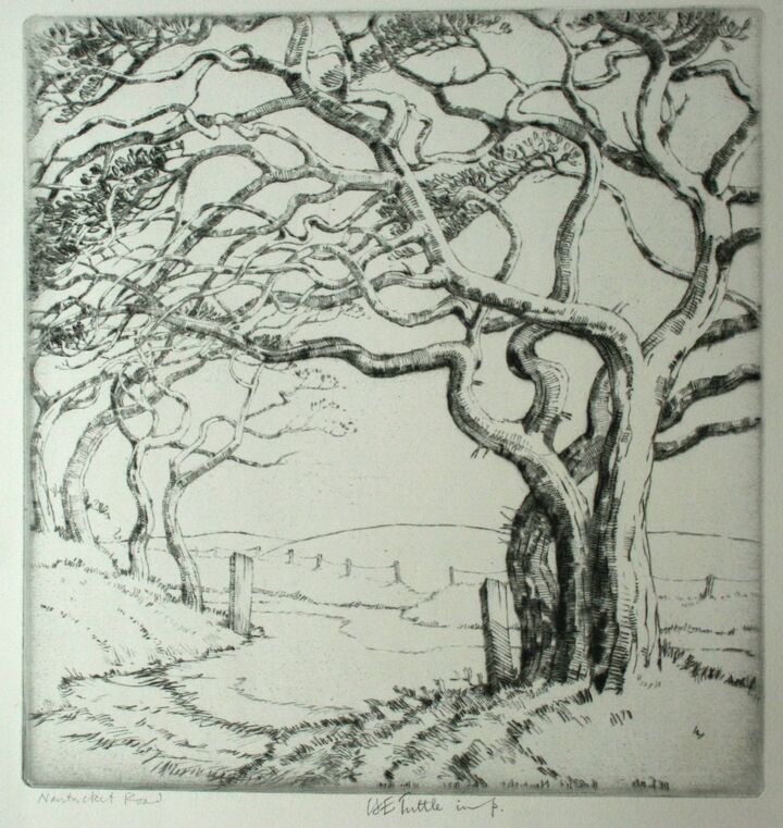 Tuttle received formal training at Yale University and the Slade School, London. He created his first published drypoint engraving in 1925, a medium that he would favor for the remainder of his career. In the 1930s and 1940s, he was Curator of Prints at the Yale University Art Gallery, a full member of the American Federation of Arts, the Brooklyn Society of Etchers, and the Chicago Society of Etchers. His legacy was honored posthumously with the 1948 Yale University Press publication of Emerson Tuttle: 50 Prints, which presents a complete catalogue of his drypoint engravings from 1921 to 1946.