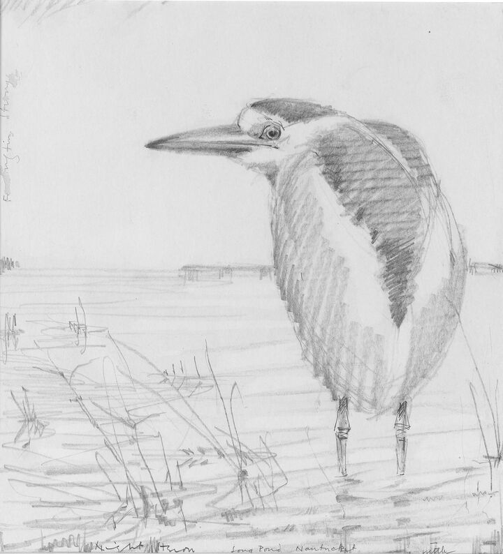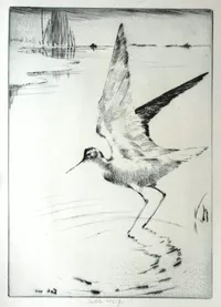 Henry Emerson Tuttle is widely considered one of America’s greatest twentieth-century etchers of birds. Largely a self-taught artist, Tuttle suffered from a kidney disease as a child, leading him to spend large amounts of time quietly observing bird life in the woods. He would devote much of his career to drawing and making prints of birds, both from life and using stuffed specimens in his studio. On Nantucket, Tuttle showed his work at the Candle House Studio, the Easy Street Gallery, and the Kenneth Taylor Galleries.
