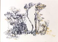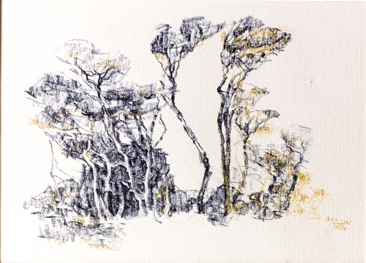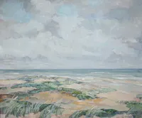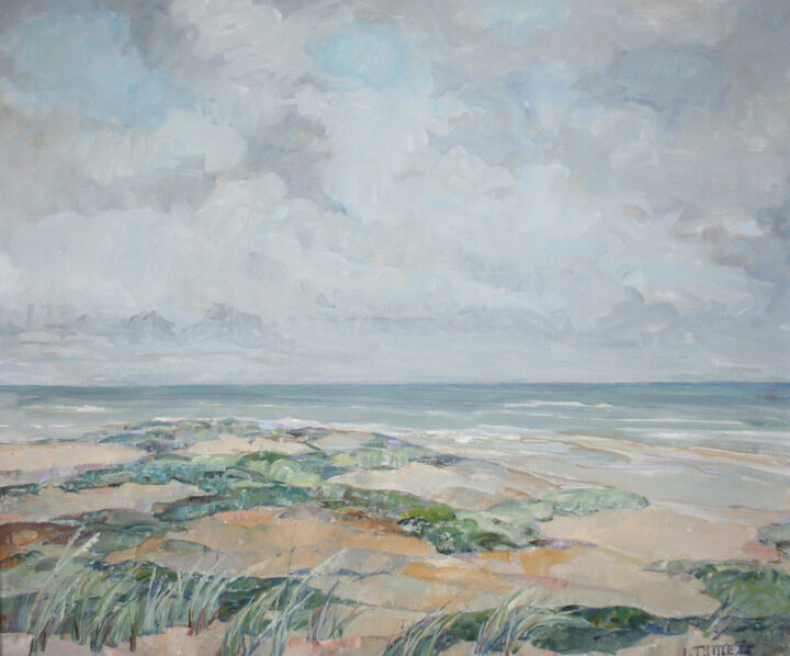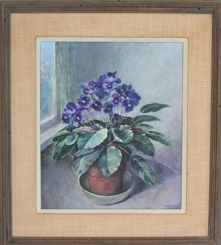 After neglecting her paints for a decade, Tuttle became excited in the mid-1960’s by the style of a new teacher on island, Phililp Burnham Hicken, and studied acrylic painting with him into the 1970s.
