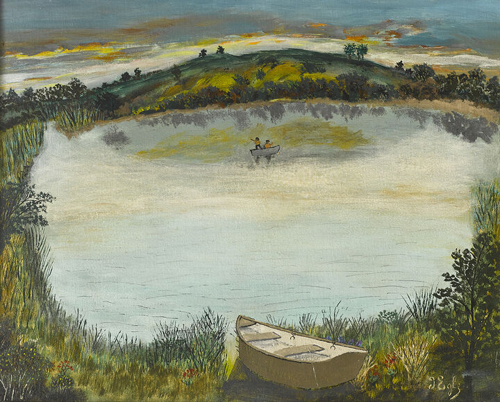 In the 1950s, the Egles moved to the Lily Pond area, sharing a property with their daughter’s husband, electrician Bob Blair. The Lily Pond would become the subject of many of his paintings, featured in summer and in winter.