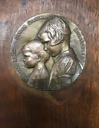 The bronze memorial plaque commemorating Will Gardner in the Atheneum garden was designed and cast by her in 1965.