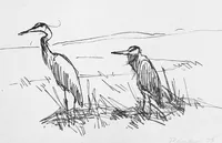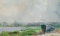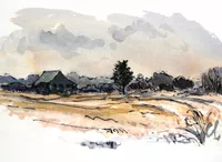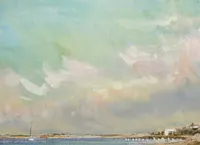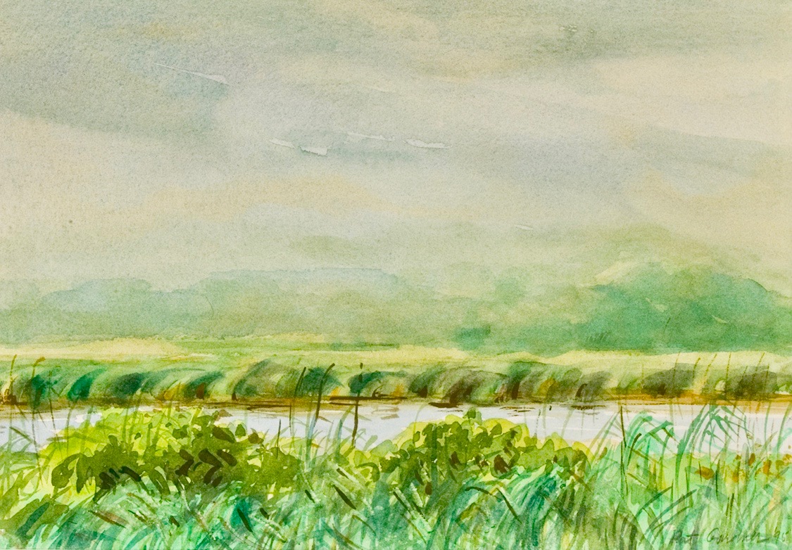 Pat took up watercolors around 1970 and never looked back. What excited her about the medium was its immediacy. “I simply, and in a straight forward fashion, arrive at the essence of an object without a lot of detail. If I don’t capture the scene immediately and on the spot, I have lost it.” When arthritis reduced her efforts to carve birds at the pace of her youth, Pat concentrated on watercolors and pastels of unspoiled island scenery. The annual AAN Artist/Patron award for excellence at en plein air painting is named after her.