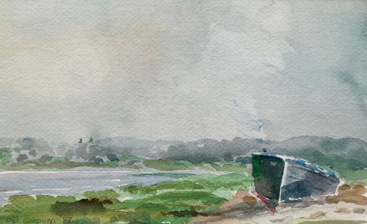 Pat began her art training with sketching and painting lessons from Ruth Haviland Sutton, and her long-term friendship with Sutton led her to the Artists Association and its tight community of patrons and artist members. Pat graduated Nantucket High School in 1944, and she joined a fledgling AAN a few years later as an oil painter, serving briefly on its board while she completed her education at Skidmore College. “I think,” said Gardner, “my exposure to the beginnings of the Artists Association was very influential in my life.”