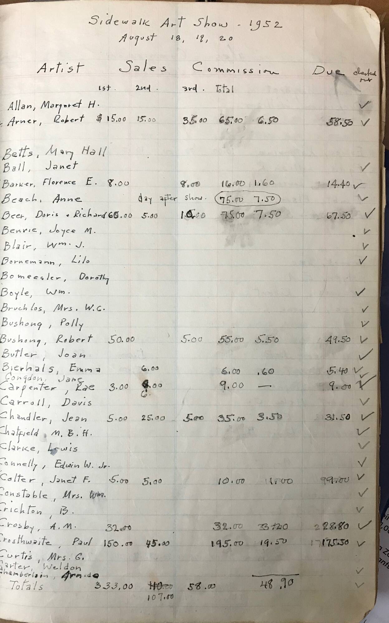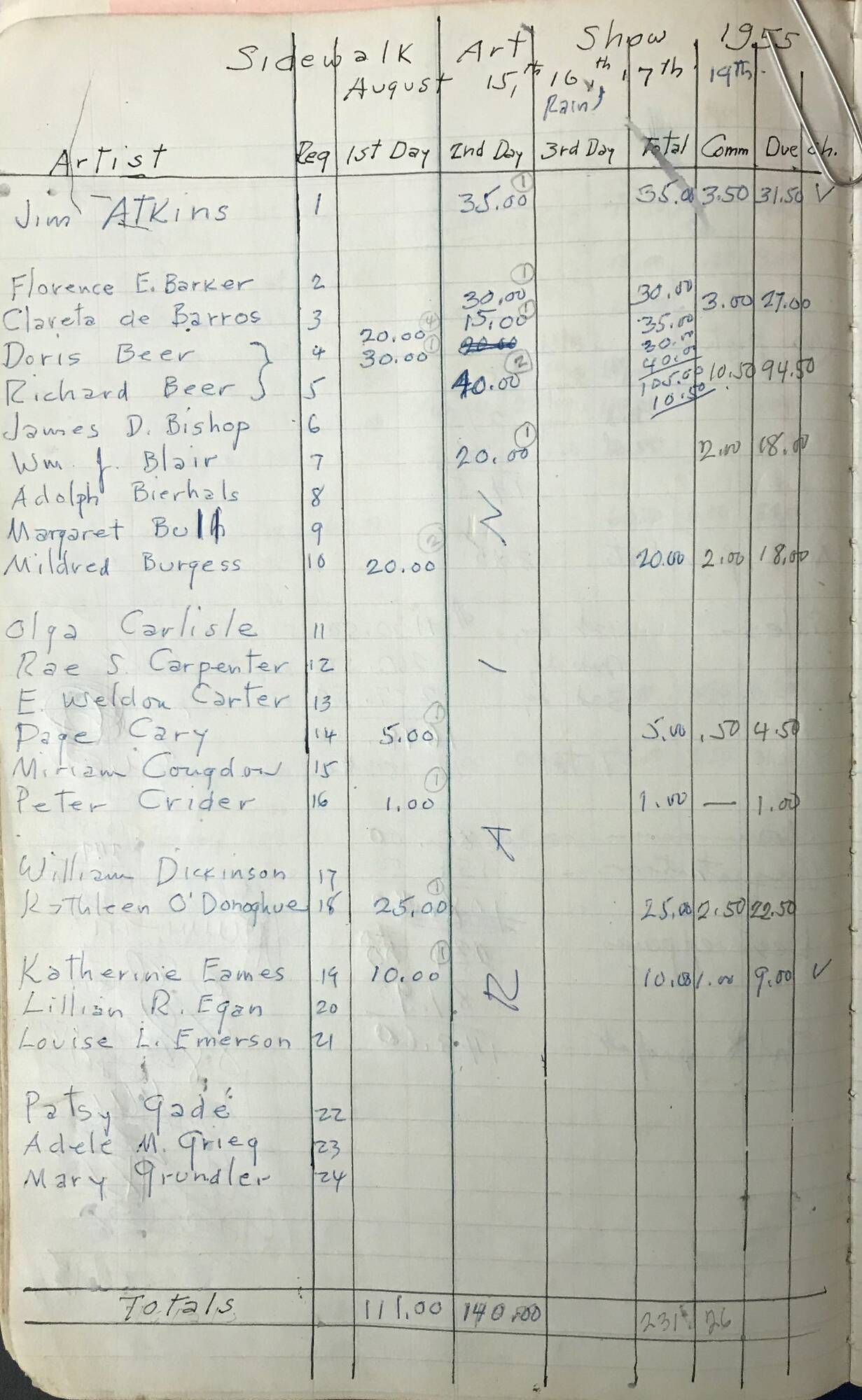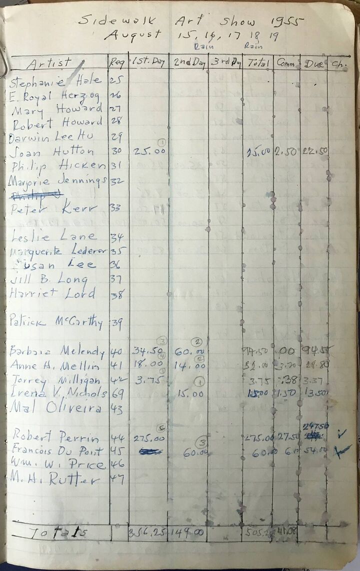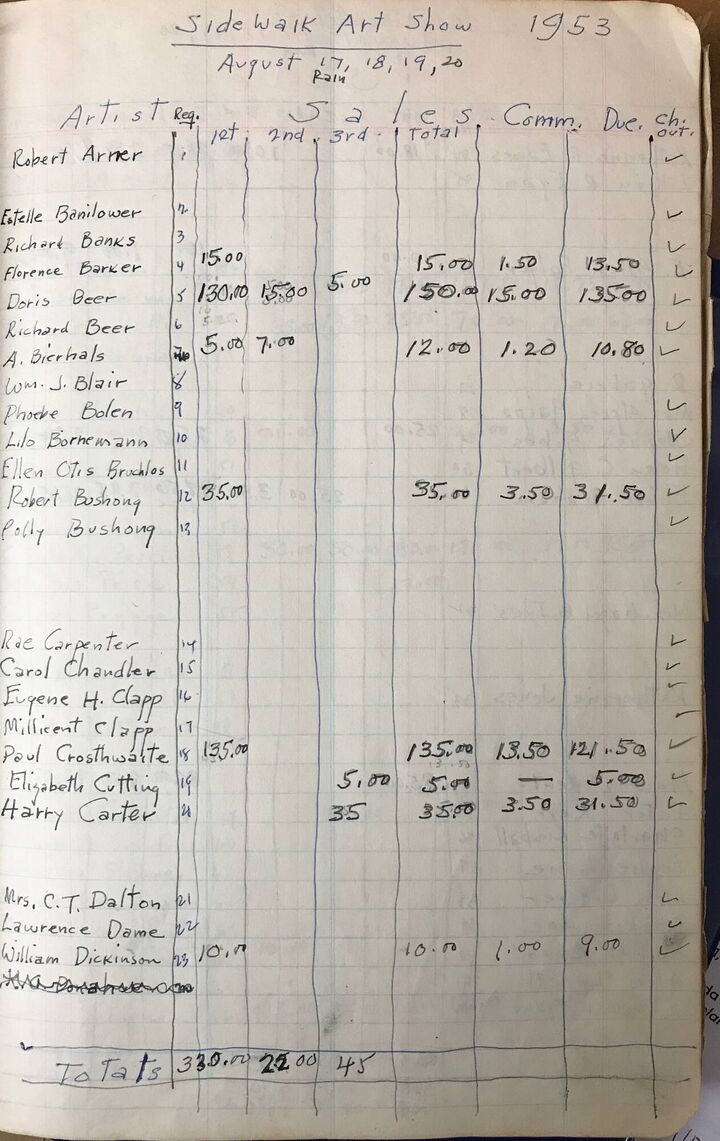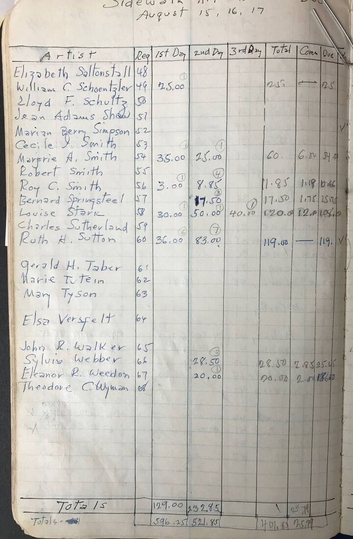The Sidewalk Art Show Ledger covers outdoor exhibitions from 1952-57.