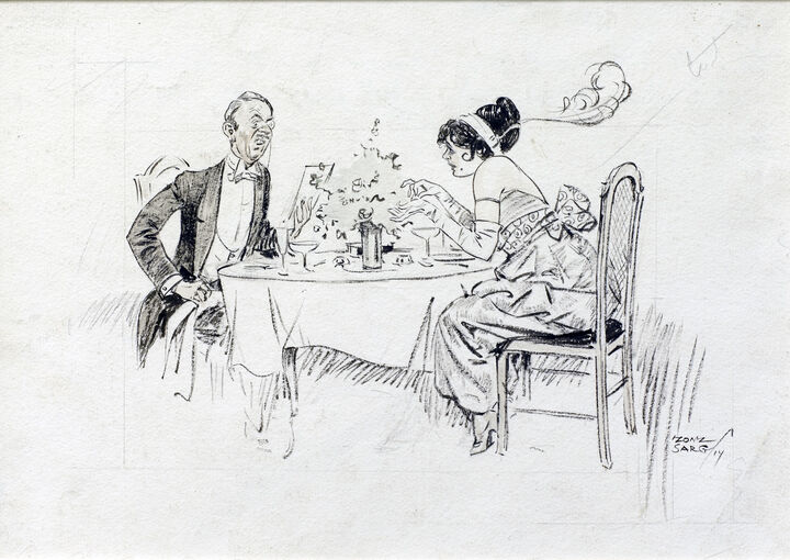 With the advent of World War I, Tony moved his family to New York, where he did illustrations for The Saturday Evening Post, Parents Magazine, Boy’s Life, Good Housekeeping , Vanity Fair and others which bolstered his reputation in the New York art community. He had a studio in Times Square and his reputation soon soared.